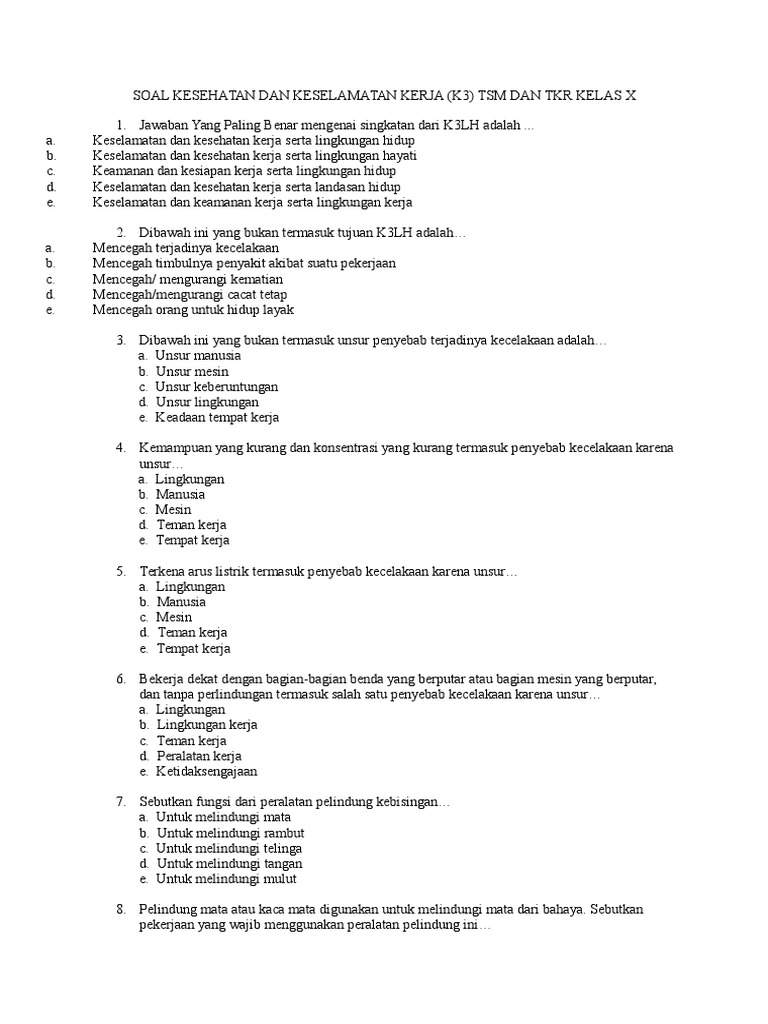 Di Bawah Ini Yang Tidak Termasuk Tujuan K3lh Adalah. Soal Kesehatan Dan Keselamatan Kerja Budi Agung