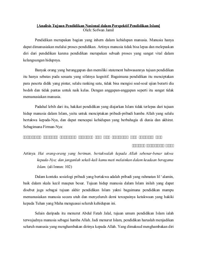 Tujuan Manusia Hidup Di Dunia Menurut Islam. Analisis Tujuan Pendidikan Nasional