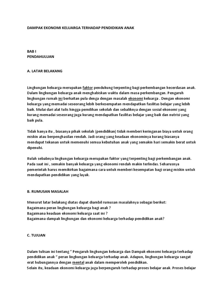 Tujuan Pendidikan Anak Dalam Keluarga. Dampak Ekonomi Keluarga Terhadap Pendidikan Anak